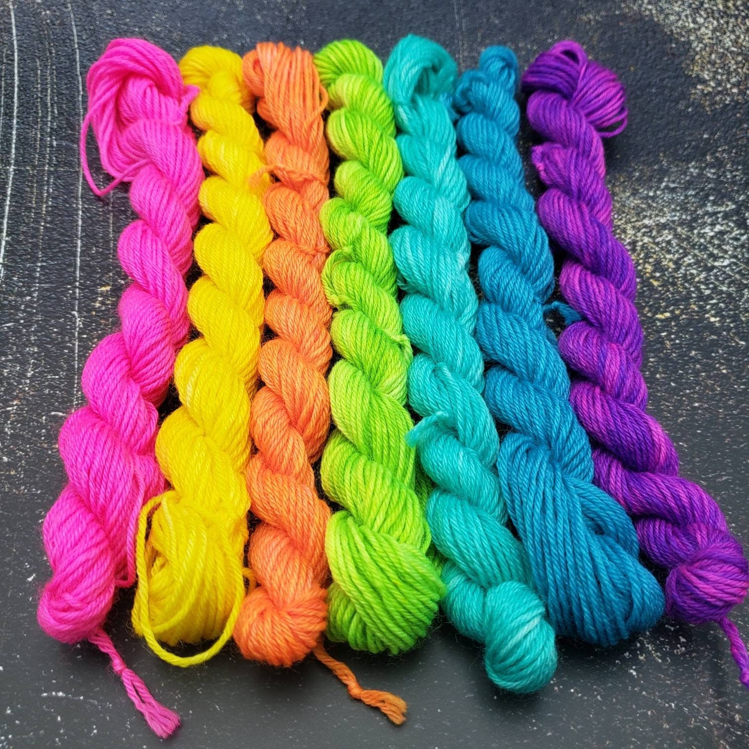 Acid Rainbow Set Of Seven Neon Yarn Colors Gemstateyarn